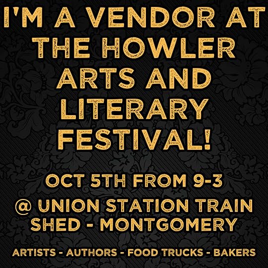 In other news, I’m officially attending the Howler Arts and Literary Festival in Montgomery AL on October 5th. If you’re in the area, feel free to attend. It is my first, and probably last, public event. October is going to be a big month for me, but I’ll get into that later.