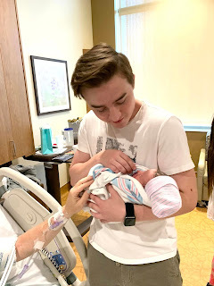 AfterwardOne thing we wanted to make sure of was that all our kids understood the surrogacy process every step of the way. I explained the medical side of things (egg, sperm, implantation) and helped even our 6-year-old understand that I wouldn't be the mom to the baby. And they got it. I'd still get questions every now and then, but we were pretty open and made sure to answer them all. But even after I had the baby and the kids came to see me and her in the hospital, our 9-year-old whispered in my ear, "So . . . just to be clear, this is not my sister, right?" When I reassured her that she wasn't, she seemed happy and loved holding her new little "cousin." Each family member got to hold this new little baby and appreciate the life that was in me for nearly 9 months. I love seeing these photos and remembering that they learned from the experience too.