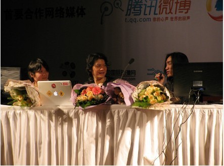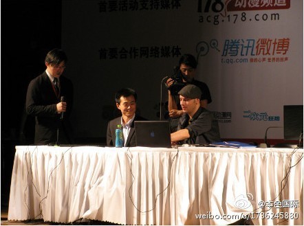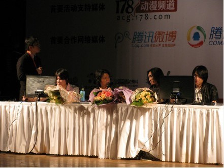 2012年5月11日我们的本杰明老师、寒放老师和来自日本的《超时空要塞》之父美树本晴彦老师,大友克洋连载漫画《AKIRA》担任主编的由利耕一老师在IDAC国际数字艺术交流会进行记者见面会。