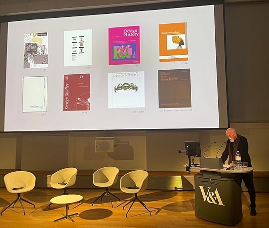 Finally, Jeremy Aynsley reflected on how design history has changed over the years. He expressed some concern about encyclopaedic projects such as the World History of Design (Margolin, Houze and Rajguru, eds.) and shared his opinion that the V&A’s series of blockbuster exhibitions such as Art Deco and Cold War Modern were important interventions at the time, whose moment has now passed. Aynsley closed his talk with views from other design historians about important themes for the future of the field, including Kjetil Fallan emphasising environmental histories of design, Zeina Maasri contributing a silence as a response to the war in Gaza and Israel, and Alice Twemlow adding to my production-consumption-mediation paradigm, a fourth phase of disposal. Had Aynsley asked my view, I would have emphasised the growing critical mass of work on the design history of disability, including publications by Bess Williamson, Elizabeth Guffey and Aimie Hamraie, but instead I contributed this addition to the question session after the keynote.
