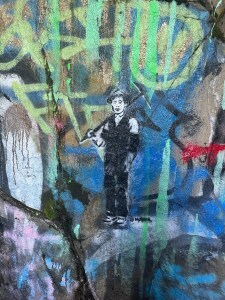 —The Tunnels are, as advertised, an eyesore. The AllTrails route begins in a dirt lot at the mouth of one tunnel opening. The amount of graffiti is staggering; every surface is covered, layered like geological sediment. In any given tunnel section, one could scrape through the brightly colored spraypaint to travel backward through time. The visible layer broadcasts today’s concerns. FUCK NETANYAHU, I read as I enter the tunnel.