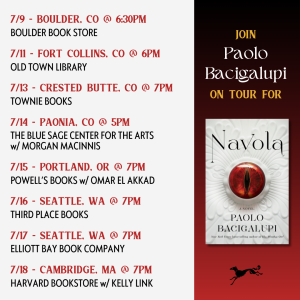 First up, Colorado: Boulder, Fort Collins, Crested Butte, and Paonia. (later in August I’m also circling back to Durango). Then we branch out across the country:  Portland, Seattle, Boston, Washington DC, Brooklyn, Santa Cruz, San Francisco, Los Angeles, and San Diego.  I’m also doing a few events in the UK in August around Worldcon. I’ll get those dates up as I have them.