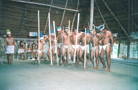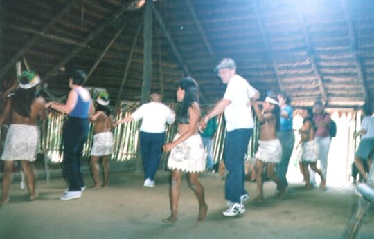 This is real, this is what it is, this is the Amazon. Not a set, not a re-creation. We watch a tribal dance, several of them, complete with bare breasted women and men pounding sticks on the hard packed clay floor.