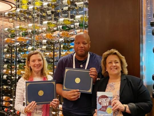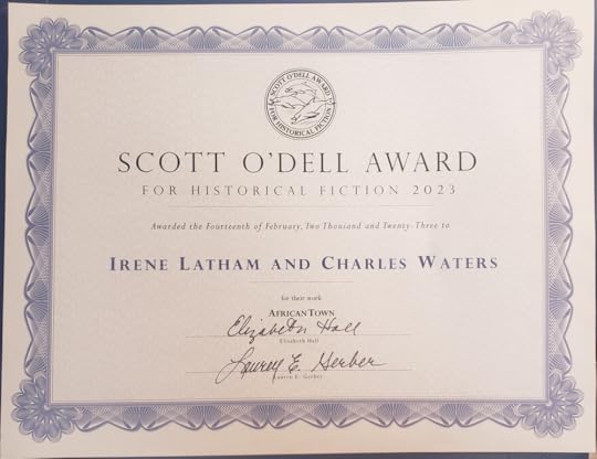 Thrilled to announce AFRICAN TOWN, co-written with Irene Latham, has won the 2023 Scott O'Dell Award for Historical Fiction! You can read the press release by clicking here, as well as the School Library article here. We're so grateful to the O'Dell committee as well as the kind folks at Penguin Random House, in particular the editor of the book, Stacey Barney, and myself and Irene's literary agent, Rosemary Stimola. Here's the way the book looks with the O'Dell sticker now on there.