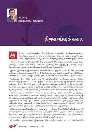 பொதுவில் விமர்சகர்கள் இருவகை. பிறமனிதர்களைக் காயப்படுத்தவென்றே விமர்சனங்களை வைப்பவர்கள் முதல்வகை. குறைகளைக் களைந்து இனி வரும் நாட்களில் சம்பந்தப்பட்டவர் மேன்மையுற வேண்டும் என்ற நோக்கில் விமர்சனங்களை வைப்பவர்கள் இரண்டாவது வகை. விமர்சனம் அல்லது திறனாய்வு ஒரு கலையெனில், உண்மையான விமர்சகர்களின் நோக்கம் இரண்டாவதாகத்தான் இருக்கவேண்டும். காரணம் கலையின் முயற்சி ஆக்கலேயன்றி அழித்தல் அல்ல.
