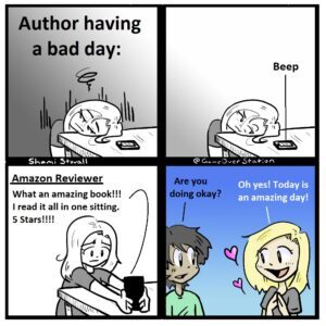 This brings me to the cartoon. I could go on and on about why readers should take the few seconds needed to rate a book. However, this cartoon does a far better job and in far fewer words than I would use. Created by Shami Stovall