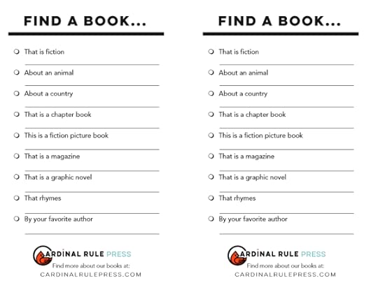 The point is reading can be so fun and exciting, and to help with that we’ve provided something to help with your reading goals: our Find a Book Challenge, which you can share with a friend to help track each other! Hopefully, these tips help you enjoy reading as much as us at Cardinal Rule Press. So, don’t hesitate, grab a book and enter a world of imagination!