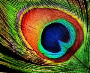 (…) En el centro de los círculos anidados en las plumas del pavo real, se puede ver un increíble azul cobalto iridiscente que, probablemente no por casualidad, es el color tradicional de Anuttara Śiva, la conciencia absoluta. El verso dice explícitamente que, a través de esta meditación, uno entra en el anuttara śūnya, el Espacio Supremo, que es el Corazón absoluto del Ser.