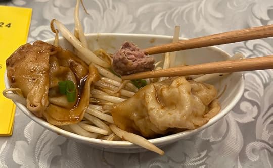 Ever since getting Andrea Nyugen’s book ASIAN DUMPLINGS, I’ve been making wontons and other dumplings frequently. Buy it. (At Bookstop or at Amazon) Every recipe in it has worked, and her website/YouTube channel has lots of tips. So almost every menu of ours has to have some kind of a bun or wonton or soup dumpling. So this was a natural, since Mary’s suanla chou shou is one of the most missed dishes in Cambridge history.