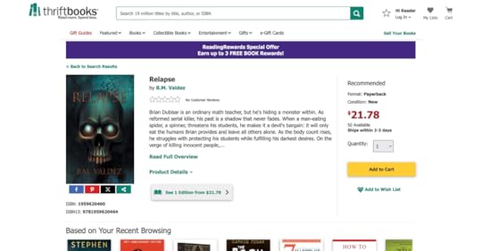 AbeBooks: This is a site that I’ve never used to buy books, unlike ThriftBooks. I do see that there are many different sellers on this website that have Relapse listed, including both new and used options. If you’ve ever used AbeBooks to stock your personal library, I’d love to hear about it. I am always looking for new places to purchase new books.
