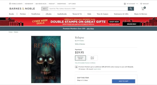 Barnes&Noble: Of course I had to check out Relapse on the biggest bookstore giant that remains standing in the United States. They offer both the paperback and the eBook version so you can download the book directly to your Nook. There’s also an option to check availability in your local Barnes&Noble so maybe you can find it on shelves! It looks like none of my local stores have it on shelf so unfortunately, I can’t share a photo of that. But I would love to see photos of Relapse on shelves in any store you find it at.
