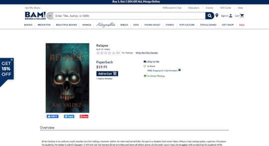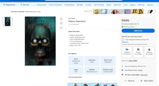 Walmart: Last but not least, I checked the Walmart website. As one of the largest retailers in the United States, I had to know if they were carrying Relapse. To my surprise, they are! You can snag the book here for a price that is a few cents cheaper than on Amazon or the publisher’s site.
