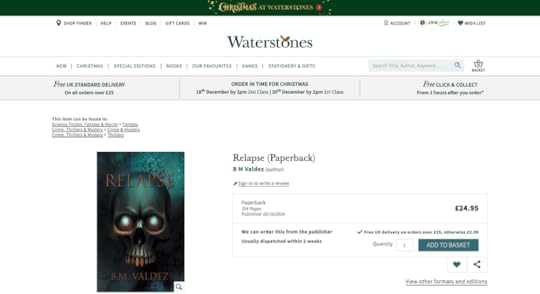Waterstones: I am not entirely sure what this store is as I have never heard of it. They do offer Relapse for purchase though. It appears as though this is a bookstore located in the UK as their currency option is the pound and their shipping options are UK based. If you live in the UK and you know of this store, I’d love to hear more about it.