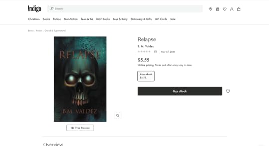 !ndigo: This is another place I have never heard of. They appear to be an eBook curator as they offer the Kobo eBook version of Relapse for purchase.