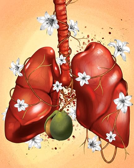 Sebastian Timpe: This was a very interesting piece to approach from a visual perspective, it had two stories going in it and one of them is a conversation with no visual elements attached. After reading it once I knew the first illustration had to be the white flowers in the lungs. It was ...