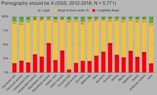 This stat marks a reversal in the trend that started with the Boomers of each successive generation favoring porn bans less than the last.