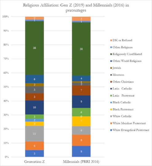 First, in terms of religiosity, Zoomers are tied with Millennials.
