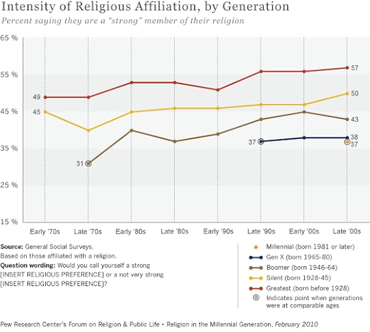 Nor do they show people's general tendency to become more religious with age. Consider that Zoomers as a group are much more religious than the Boomers were at their age.