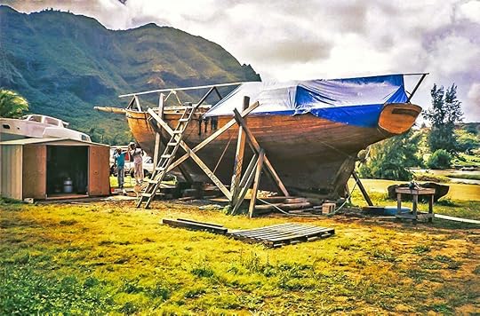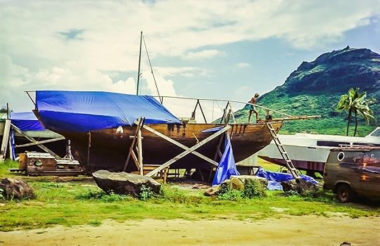 The small garden shed, purchased from Sears, was our workshop and the generator, wet dry vacuum, bench vise and grinder, table saw, planer and all our hand tools and materials were stored here. We put in a plywood floor, built shelving and reinforced the doors. A large assortment of sawhorses, collected from various junk piles in the boatyard, were invaluable for setting up workspaces for each task.