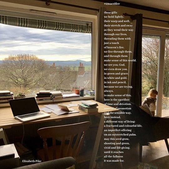 Because all of this sketching out and honing of our voice is messy and open-ended, but our life becomes that outstretched palm, the bedding-down place of the creative seed. So do not fear the loose ends or the unfinished projects, you can come back to them later. Just keep following that green shoot, as it grows.