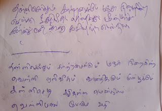 [ நான் எழுதிய முதல் வெண்பா...இது ஆசிரியர் திருத்தி எழுதியது என்பதால் வடிவம் அவருடையது. உள்ளிருக்கும் காட்சி என்னுடையது.