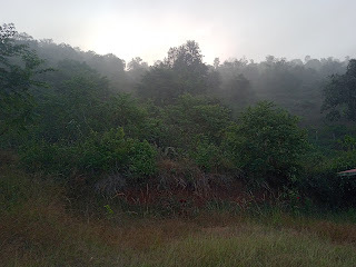 முதல் நாள் காலையில் அறையின் வெளியே வந்து நின்ற போது சட்டென ஒரு வேர் ஒரு சிவநடன   ஃபாவத்துடன் என் கண்களுக்கு தெரிந்தது. எங்கள்அறை மலை சரிவை ஒட்டியிருந்ததால் அறை முற்றத்திலிருந்து இருந்து குன்றின் சிகரத்தை அன்னாந்து பார்த்துக்கொண்டிருப்பது மகிழ்ச்சியாக இருந்தது. அதே போல உணவுகூடத்திற்கு பின்புறம் கை கழுவியப்பின் அந்த இடத்தை ஒட்டியே இருக்கும் குன்றின் சிகரத்தை சற்று நேரம் அன்னாந்து பார்த்துவிட்டு வருவது ஒவ்வொரு முறை உணவை முடித்த பின்னும் கைகழுவியப்பின் அங்கு நின்று அன்னாந்து சற்று நேரம் பார்த்தேன். கீழே ஒரு மாங்கன்று வளர்ந்து கொண்டிருக்கிறது.