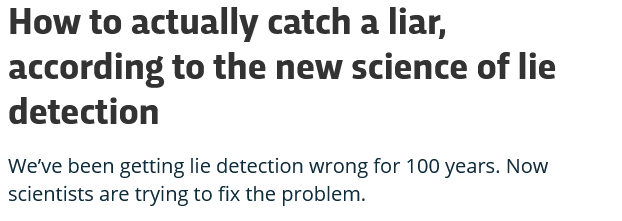 Yet we also often fail to detect lies. Why? Researchers have been trying to answer this question for over a century and the liars are still slipping through our fingers. But the latest research may help shine a light on where we’ve been going wrong.