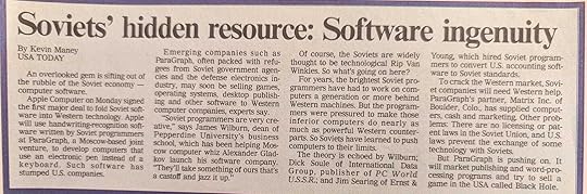 There were quite a few, and, surprisingly, some of them were solving problems that had been stumping U.S. companies, and doing it with minimal computing power. For example, a Moscow startup called ParaGraph built software that could recognize handwriting much better than anything ginned up in the U.S. When Apple built its Newton hand-held computer (introduced in 1993), Apple contracted with Paragraph because it couldn’t find anything better here.