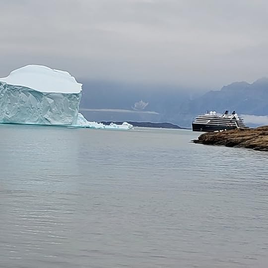 In the meantime, we were sailing for Greenland, known as Kalaallit Nunaat in the Greenlandic language. In Eastern Greenland, Tunumiit is the dialect of Greenlandic that is commonly used. The ship had its own Greenland local expert on staff who taught us a lot about this amazing country, its people, and its heritage. We passed fabulous ranges of mountains and fjords. We knew we had crossed into the Arctic Circle when icebergs began drifting by. We gaped at the map and were in awe that we were really there. It’s a surreal feeling.