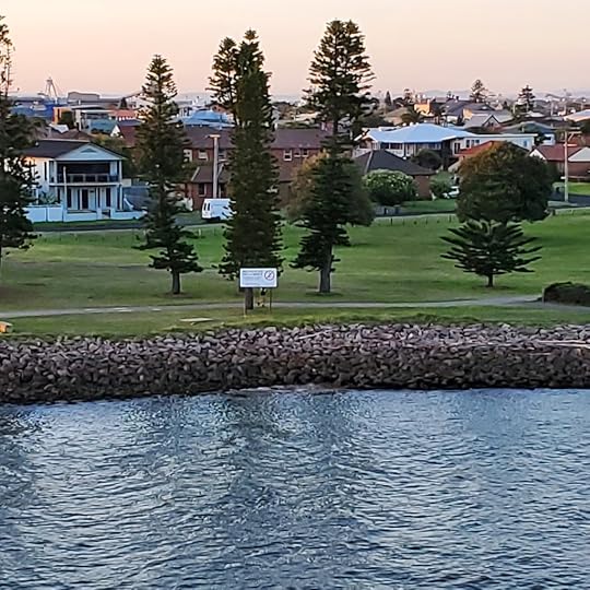 The next day, December 5, it was time to disembark at our final stop, Sydney. I was upset with myself for sleeping through our arrival and missing the sight of the fabulous Opera House in the harbor. I don’t know if I’ll ever be back, but I hope someday, we may be able to see more of this wonderful country. Skimming along the Eastern coast wasn’t nearly enough. But we’re grateful for everything we saw and experienced. Here’s a bit more of Newcastle before I sign off for now. There were two fisherman waving goodbye as we sailed away as the sun set behind us. Take care and I’ll see you next time!