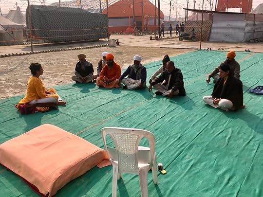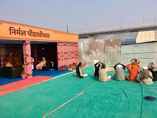 I had personally been at the Ardh Kumbh at this very same Prayagraj in 2019. Invited by an akhara to share the practice of Hamsa Yoga. I was reluctant, not wanting to enter the domains of mandaleshwars and mahamandaleshwars and pithadheeswars. But when I asked my Guru he said, “Of course you must go. How many people get an opportunity such as this?” So go I did. I was pleasantly surprised by the warm welcome and even more so when they offered me prime location to hold my sessions right in front of the Pithadheeshwars tent. I was there for three days. They offered me a personal tent and invited me to stay for the next few months, as the crowds were slowly increasing and expected to swell in the coming days. But I realised that this was not my area of comfort. I am more used to having personal and up close connection with the people I share my Guru’s practice with.