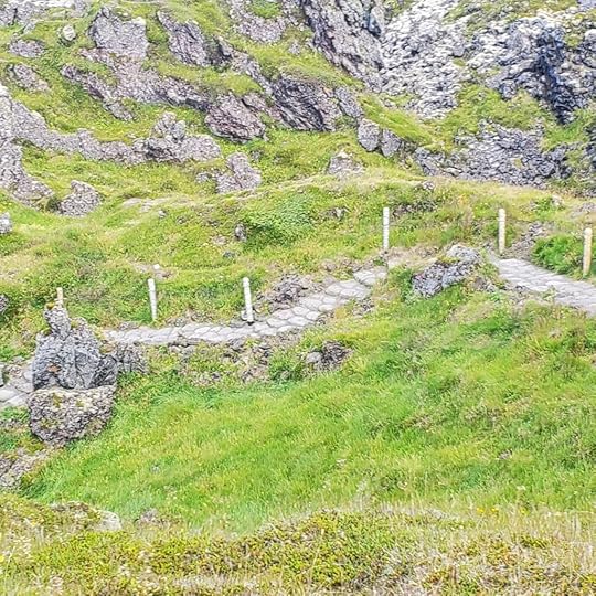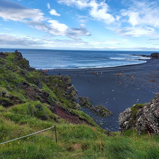 The western area of Iceland in August is green and lovely, with its rolling hills dotted with farms where sheep and small horses abound. I’ll tell you about these animals later. Since it was so green, and Greenland is mostly barren, covered in snow and ice, we wondered how Iceland got its name. I looked it up. In 850, a Swedish Viking named Naddoddur was blown off course west of the Faroe Islands and landed in the fjords of eastern Iceland. He called it Snowland. Another Viking called it after himself, Gardar’s Island, after his circumnavigation determined it was an island in 860. But the man nicknamed for the ravens he used for navigating, Hrafna-Floki Vigerdarson (Raven Floki), named the island Iceland after two severe and devasting winters. The first time he tried to leave, he was blocked by drift ice in the fjord. That’s when he called the place Iceland. He tried to tack his ship by a different route but was forced to spend another winter. When he finally got out of there, he had nothing good to say about the place.