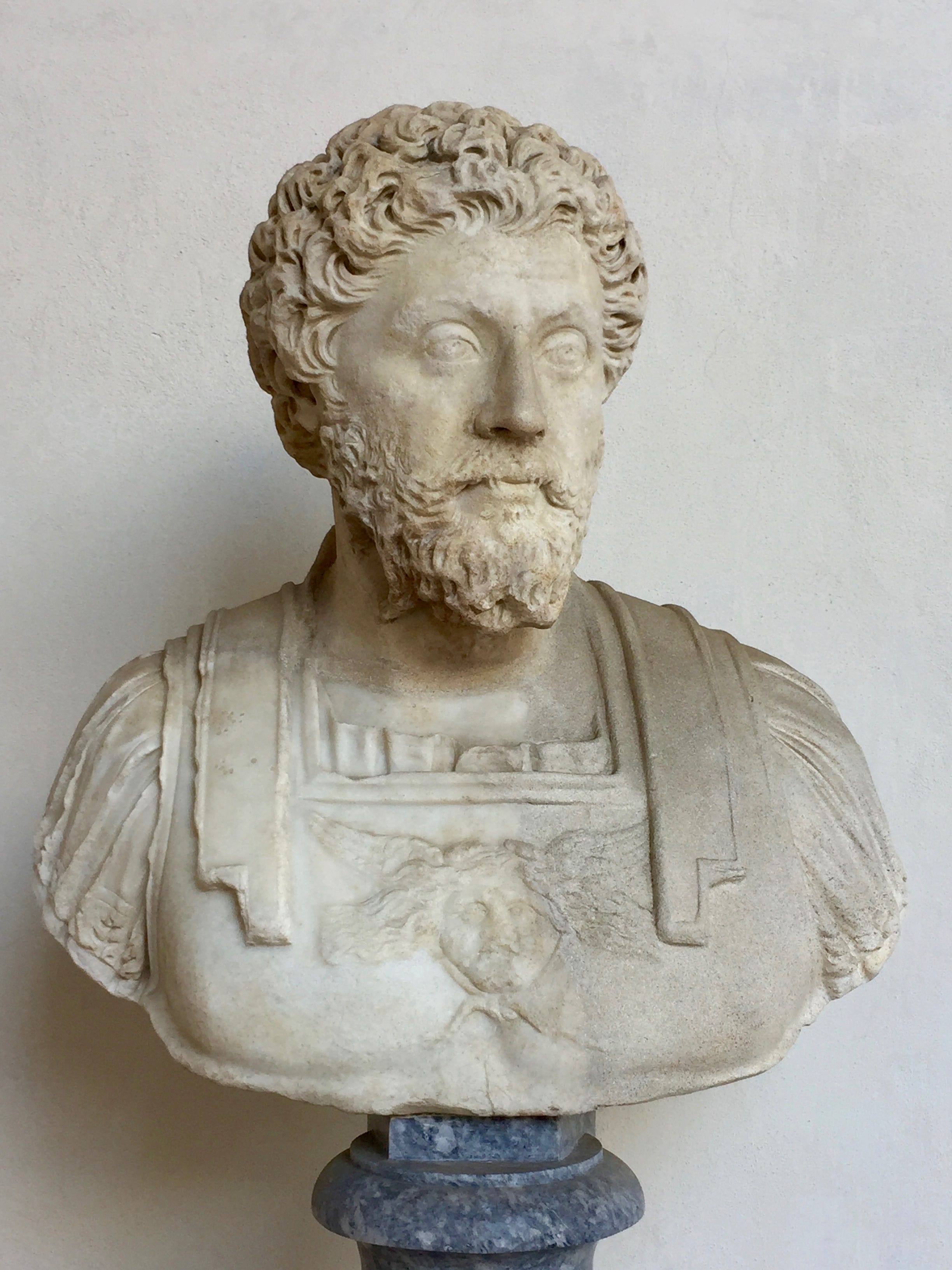 Marcus Aurelius, bust at the Baths of Diocletian, Rome. Photo by the Author.