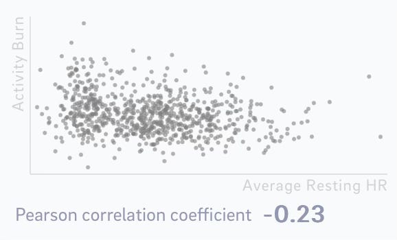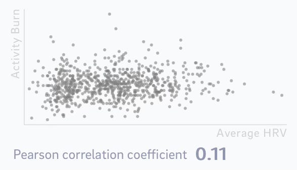 But what about HRV or RHR? We know those should correlate roughly with activity levels, and indeed we see weak correlations for both with activity levels.