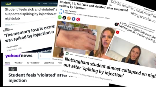 Needle spiking is virtually impossible. As Professor Adam Winstock of the Global Drugs Survey noted, effectively administering an injection is not easy in ideal circumstances, never mind in a dark club through the victim’s clothes. Keeping the needle in the victim long enough to inject the drug would also be extremely challenging. Furthermore, injecting someone in a busy nightclub would pose a very high risk of being caught.[vii]Evidence is lacking. No drugs have been found in the systems of the victims. No culprit has been caught on CCTV or by the many potential witnesses. No prosecutions have been made.The symptoms are identical to being drunk. The signs and symptoms that you’ve been needle spiked include loss of balance, feeling intoxicated, blurred vision, lower inhibitions, confusion, nausea, throwing up and unconsciousness. You’ve probably noticed that these bear a startling similarity to being drunk.It makes no sense. The victims are not sexually assaulted or robbed in alleged needle spiking, so what’s the motive for the crime? Needle spiking reports spread from Nottingham in 2021 to the rest of the UK, then across Europe and New Zealand – are we meant to believe that hundreds, perhaps thousands of men are hiding out in clubs with drug filled syringes looking for victims to jab for no reason? Some headlines from the 2021 panic