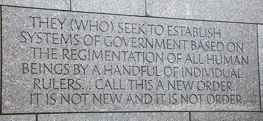 “FDR Memorial – Washington DC – 00055 – 2012-03-15” by Tim Evanson is licensed under CC BY-SA 2.0: “They (who) seek to establish systems of government based on the regimentation of all human beings by a handful of individual rulers… call this a New Order. It is not new and it is not order.”