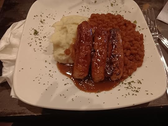 After that, it was off to The Book Barn, an outdoor used book store. We usually go to Romance Barn after the main location, an indoor location focused on romance, but didn’t have time. Mary and Mr. Mary had a puppy at home who had already been a very good girl and needed to go out. Oh well. Guess we’ll have to visit again. Which will also mean stopping by an Irish pub for bangers and mash.
