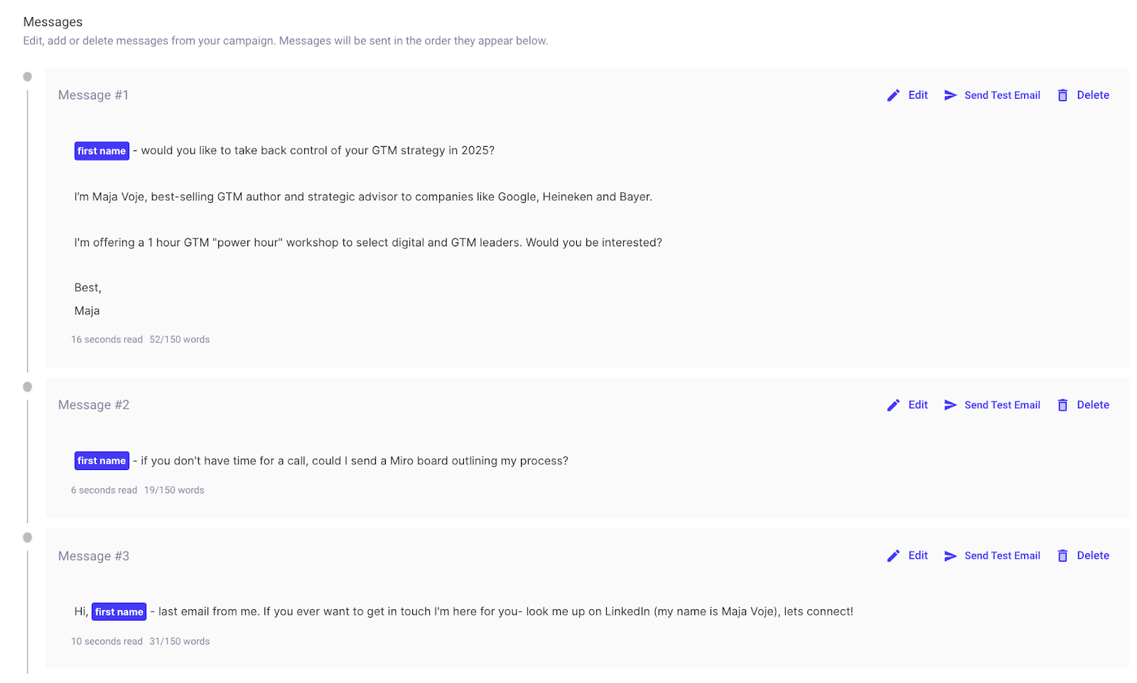Example: A company I work with went through stages 1 and 2 in Q2, and now we’re orchestrating outbound as a full GTM motion - building a data and tech stack with Clay to generate a steady flow of high-fit leads. We're layering in AI-assisted workflows for mass-personalization and light ABM to create multi-touchpoint campaigns across email and LinkedIn, making every message count.