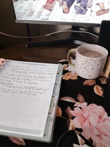 Another page in the planner filled with scribbles, scene notes, and more coffee rings than I care to count