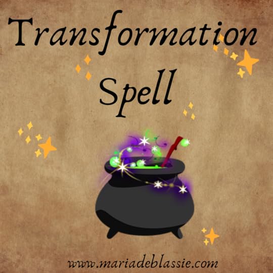 Alt Text: A brown parchment background with the text "Transformation Spell" and a cauldron emitting colorful lights.