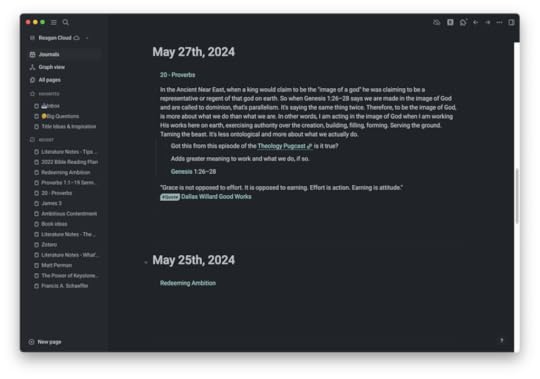 The Christian Worldview and Your PKMA snapshot of my LogSeq PKM Daily Note