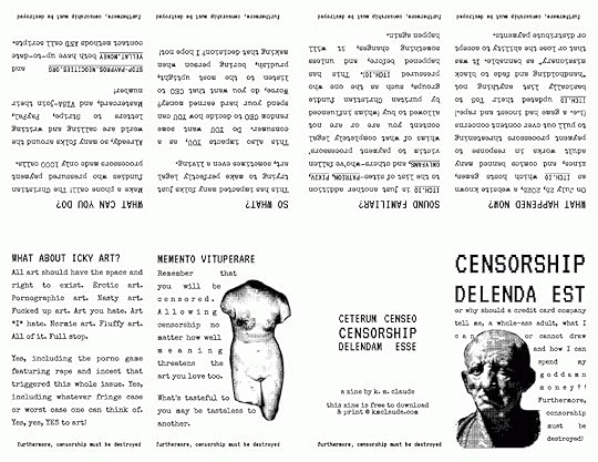 Free Zine!In an effort to get the word out and to generally rail against censorship, I am bringing a free mini-zine to Louisiana Zine Fest called “Censorship Delenda Est” because I have to use my Classics background somehow.