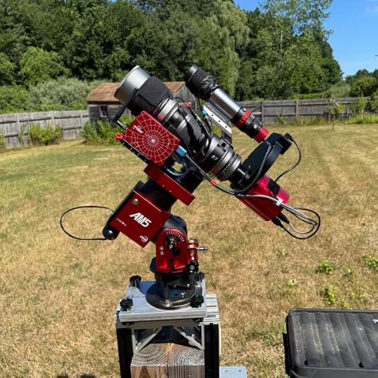 The Space Cat was already set up and ready to go, so that’s what I’m imaging with tonight. The William Optics Space Cat 51, 250mm Focal length, F/4.9 Petzval Apochromatic Ref. and the ZWO AM5 Strainwave EQ mount on the backyard pier. I have the ZWO ASI2600MM-Pro Monochrome camera with the 3nm narrowband 48mm filter set on tonight, Ha, OIII, SII, but haven’t picked a target yet! #WilliamOptics #SpaceCat #ZWOAM5 #astrophotography #astronomy