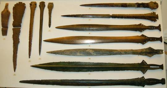 The missing tooth on that second dagger, and the crack halfway down this next one’s blade, shows what happens when design features cause weak spots.