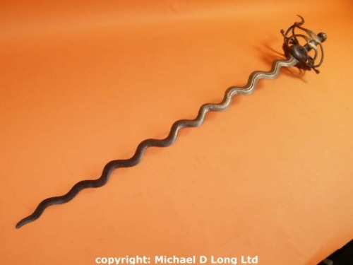 …and an Italian parrying dagger forged straight then ground wiggly…