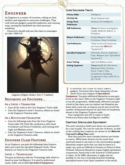 The Engineer ClassI wanted to balance the powerful House Magicians with a technological class that was equally rich. The core concept behind the Engineer was to create a non-magical character who plays like a spellcaster, but instead of channeling emotion to cast spells, they achieve their incredible effects by relying on an ever-expanding array of imaginative, crafted items.