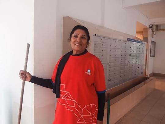 This is the janitor who has been cleaning the exterior spaces of my apartment block for years. She is super friendly and has such an wonderful spirit and smile. She let me take her picture that morning.