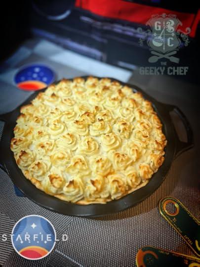 {"image":"https://i.imgur.com/A1LlU6C.jpeg"... Pie","prepTime":"PT30M","cookTime":"PT1H","totalTime":"PT2H30M","description":"Inspired by Starfield’s House Va’ruun cuisine, this hearty pie layers a golden crust, a rich and savory meat filling, and a creamy, golden-topped mash.","recipeYield":"12 to 16","author":{"@type":"Person","name":"Cassandra Reeder"},"recipeIngredient":["1 cup unsalted butter, chilled","2 1/2 cups flour","1 teaspoon granulated sugar","3/4 teaspoon salt","1/4 cup ice water (or as needed)","1 tablespoon oil or butter","1 large yellow onion, chopped","4 cloves garlic, minced","1 pound ground ~80% lean beef","1 pound ground goat meat*","2 tablespoons Worcestershire sauce (divided)","1 teaspoon dulse seasoning (optional, or use tamari)","2 teaspoons onion powder","2 teaspoons garlic powder","1 to 2 teaspoons fines herbes (or an herb blend of your choice)","2 tablespoons tomato paste","2 tablespoons all-purpose flour","1 (12 ounce) bag frozen peas and carrots","1 cup beef broth","Salt and pepper (to taste)","4 large russet potatoes (or about 4 pounds)","4 to 6 tablespoons butter, chilled and diced","1/4 cup half and half or milk","1/2 cup grated white cheddar cheese (optional)","Salt and pepper (to taste)"],"recipeInstructions":["In a large mixing bowl, whisk together the flour, salt, and sugar.","Add the cold butter cubes. Using a pastry cutter, two knives, or your fingertips, cut the butter into the flour until the mixture resembles coarse crumbs with some pea-sized pieces of butter remaining. You can also pulse it in a food processor, if you have one.","Gradually add in the ice water, one tablespoon at a time, mixing it gently with a fork or your hands until the dough just comes together. It should hold together when pressed but not be sticky or wet.","Divide the dough into two equal disks. Wrap each in plastic wrap and refrigerate for at least 1 hour.","In a large mixing bowl, combine the two meats together and season with one tablespoon of Worcestershire, 1 1/2 teaspoons of salt, and 1 teaspoon of pepper.","Heat the oil or butter in a separate large skillet over medium-high heat. Add the onions and garlic and cook for 4 to 6 minutes, stirring occasionally, until they soften and begin to brown.","Add the ground meat. Break it apart with a wooden spoon, then add the dulse, onion powder, garlic powder, herbs, and additional salt and pepper to taste. Cook for 6–8 minutes, stirring occasionally, until the meat is browned.","Add in the Worcestershire sauce, flour, and tomato paste. Mix until fully incorporated and no clumps remain. Allow to cook for 2 to 3 minutes.","Pour in the beef broth, then fold in the peas and carrots. Bring the mixture to a boil, then reduce to a simmer. Cook uncovered for another 4 to 5 minutes, stirring occasionally, until the sauce has reduced and thickened to a gravy-like consistency.","Remove from heat and adjust the seasonings to taste. Cover and set aside.","Place the potatoes in a large pot and cover with water. Bring to a boil, then reduce to a simmer.","Cook until fork-tender, about 10–15 minutes.","Drain the potatoes in a colander, then return them to the hot pot. Let them sit for 1 minute to evaporate the excess moisture.","Add the butter, half & half, garlic powder, salt, and pepper. Mash until smooth and well combined.","Stir in the cheese cheese until evenly mixed.","Grease 2 deep dish pie plates, 1 small cast iron skillet, or one medium gratin dish.","On a lightly floured surface, roll the pie dough out an inch or two bigger than your baking vessel(s) (this will vary depending on what you're using).","Line your baking dish with the pie dough, trimming any excess.","Scoop the filling into the baking dish(es) and spread evenly.","Optionally, transfer the mashed potatoes into a piping bag fitted with a large star tip (or any sturdy tip you prefer). Pipe the potatoes over the filling in swirls or rosettes. If you don't want to both with this, you can just spoon the mashed potatoes over the top, then spread them out evenly.","Set your baking vessel (or vessels) on a rimmed baking sheet to catch any overflow. Bake uncovered for 30 to 40 minutes, or until heated through and golden on top. Let cool for 15 minutes before serving."],"@context":"http://schema.org","@type&q..."}