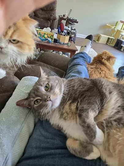 This is one of those up and down years where the downs seem to be having a field day. Since January we lost our TV, Refrigerator, HVAC system, had a fender bender in the car, had a big leak rot wood around a front window and now I’m looking at my day job (maybe) putting me part time if I don’t find an alternative. We survived all of it so far, but with the money we borrowed to get our last kid through college and the crazy hard to believe financial journey that has been, things are going to be tight, and serious for a while. On top of that, we lost Nanabootz and Mr. Crowley, two of our cats, this year. Nanabootz was nearly 17, but Crowley was only four, and both were most closely bonded to me. We still have a lot of cats. (11). Sam Francisco, an older rescue and Didi (a clueless long-haired girl) have assumed ownership of my chair and I. We only get to share with them a little while, but the depth of that connection is so strong.