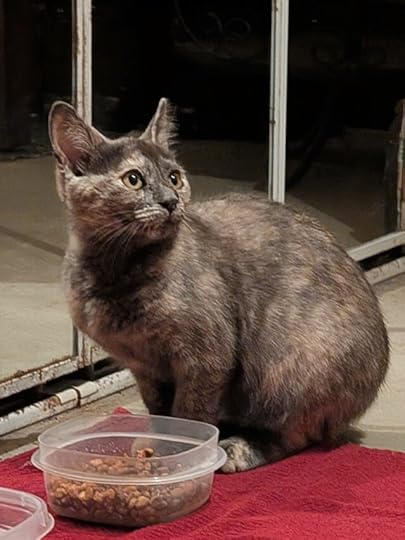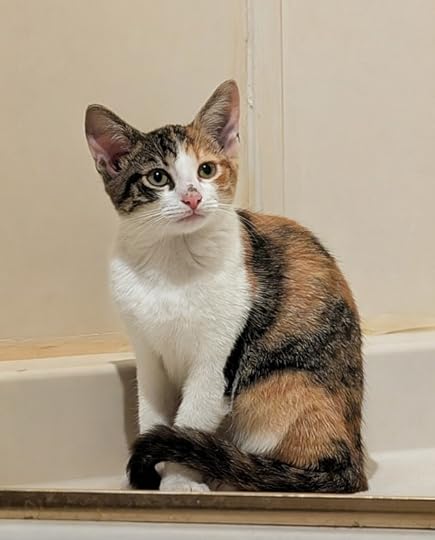 The other day Athena noted that kittens had shown up in the parking lot of Bryant’s apartment. Sadly, between then and now one of the kittens succumbed to the dangers of outside living, and Athena and Bryant decided it was time to snatch the remaining trio of kittens and move them to a safer environment, i.e., our basement guest room. That cat-napping took place this afternoon and now we have the three kittens in the house. Here they are: